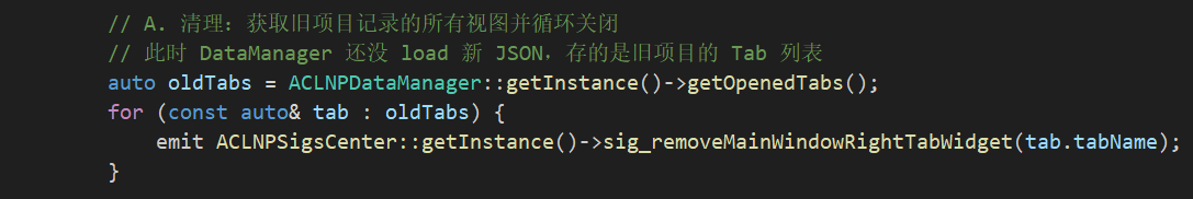 就是在新建项目的时候把旧项目的窗口清除这个功能,我看LNP那里是在DataManager用一个成员变量保存了一个“右侧已打开的标签页元数据”,然后在新建项目的时候遍历这个List,发送sig_removeMainWindowRightTabWidget信号关闭
