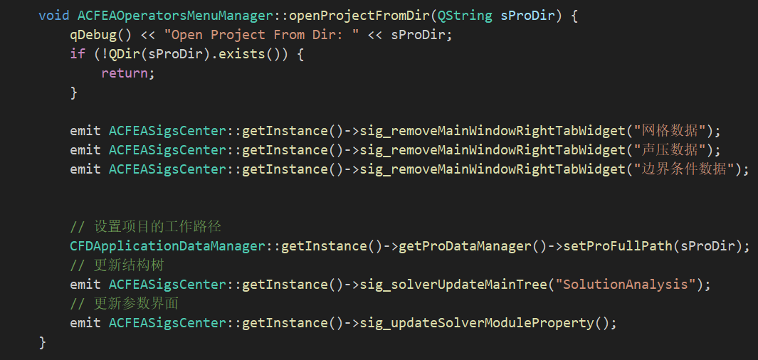 后面你可以做一下这个软件的新建、打开吧,打开就是读取那个目录底下的参数文件和渲染的一些文件,给他同步到数据类里,如果有边界条件、网格和结果那些文件的话,就给他渲染到那些窗口里(恢复)。新建就是先清理那些当前一些显示的窗口什么的,然后调用打开项目的逻辑。你可以先看看那个ACLNP软件的项目管理相关的代码