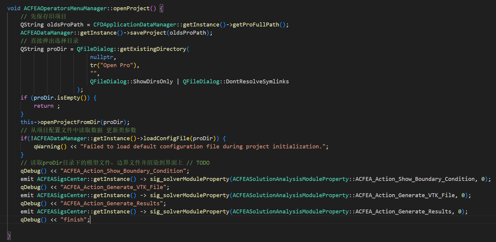 mt说是用json文件里面的openedtab作为打开窗口依据,我以为有的就要全部打开呢。然后我现在是直接在openproject这里发送信号,然后ACFEAOperatorsModelSolverProperty这边没反应,并且发现我之前写的东西有好多没考虑到的情况,现在回去慢慢改。