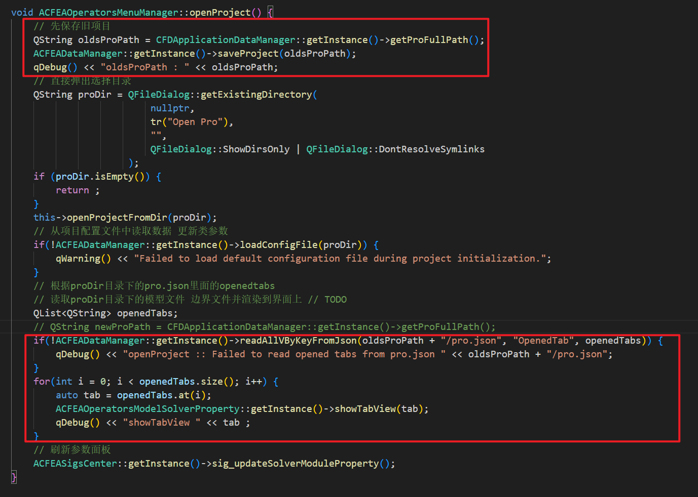 之后就是把createproject、openproject和openProjectFromDir这三个函数再重构一下,哪些是他们都要有的功能就放到openProjectFromDir这个函数里面